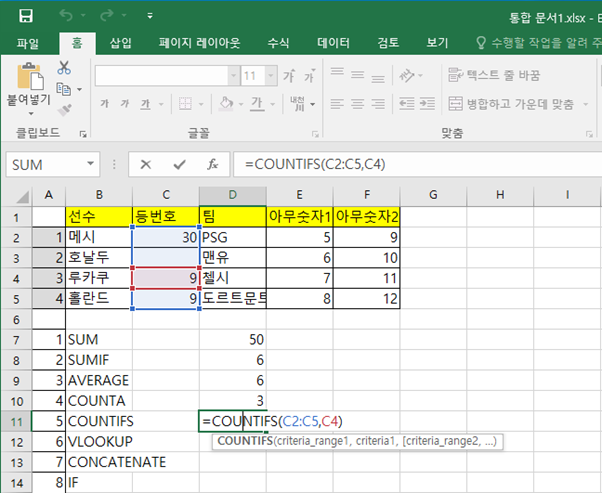 2. 엑셀(Excel)에서 자주 쓰는 함수 정리 2편 (COUNTIFS, VLOOKUP, CONCATENATE, IF)