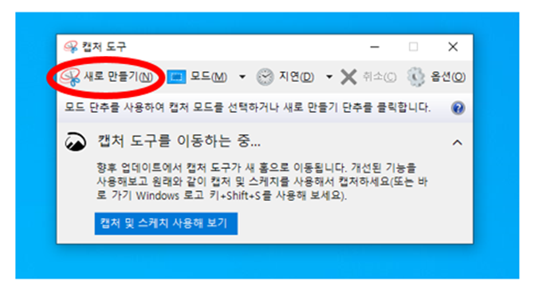 그 후 캡처 도구가 켜지면 새로만들기를 클릭을 해줍니다