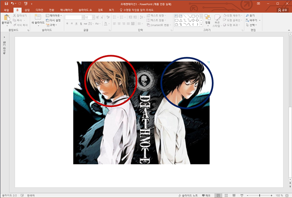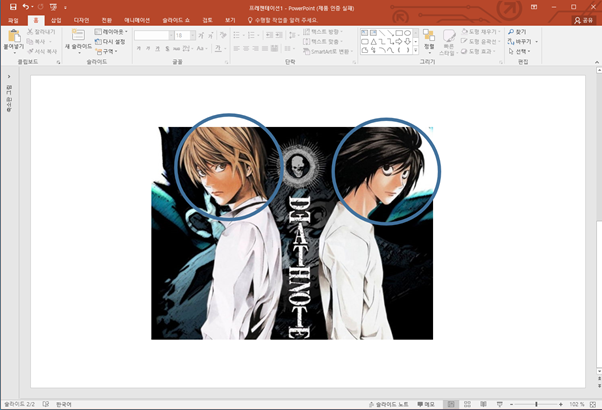 복사한 그림의 캐릭터를 강조하여 설명하기위해 파워포인트의 도구를 사용하는 방법을 설명하겠습니다