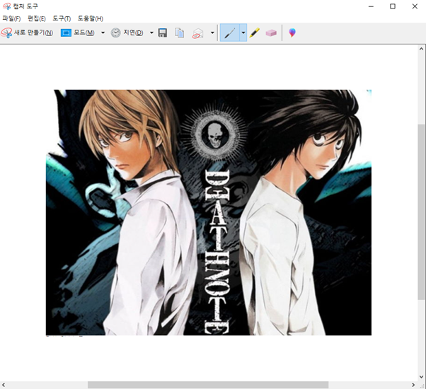드래그한 후의 캡처 도구의 화면인데 키보드의 Ctrl 키와 V키를 동시에 눌러줘서 그림을 복사해줍니다