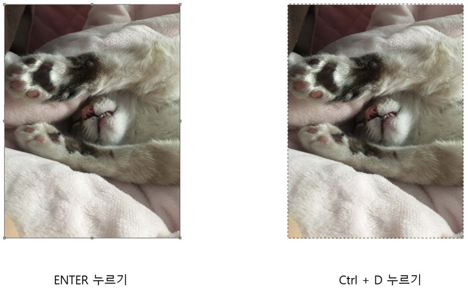 이미지 변형 후 잡았던 이미지를 놓으려면 Enter을 누르시면 됩니다.