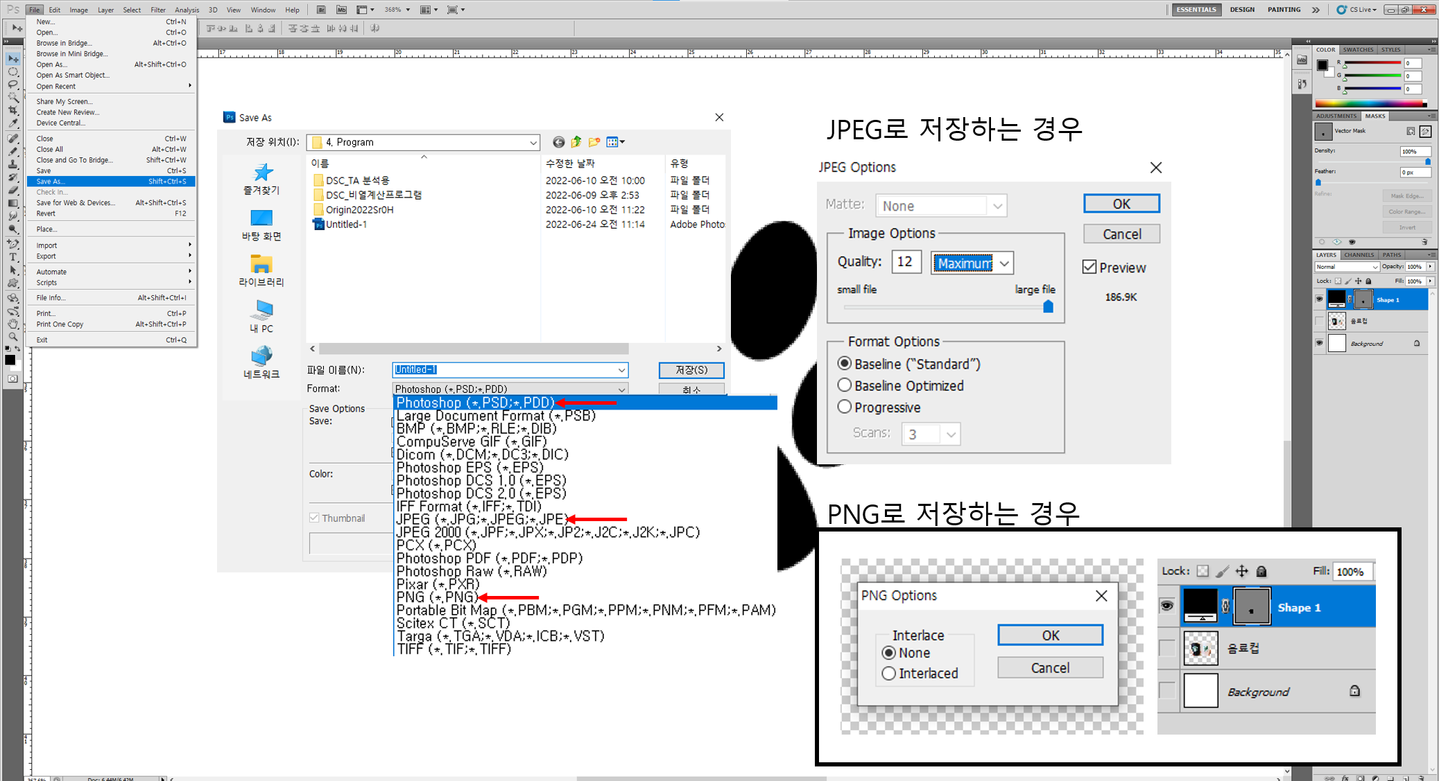 JPEG 이미지로 저장 시 가장 높은 Quality : 12로 저장을 권장해드립니다.