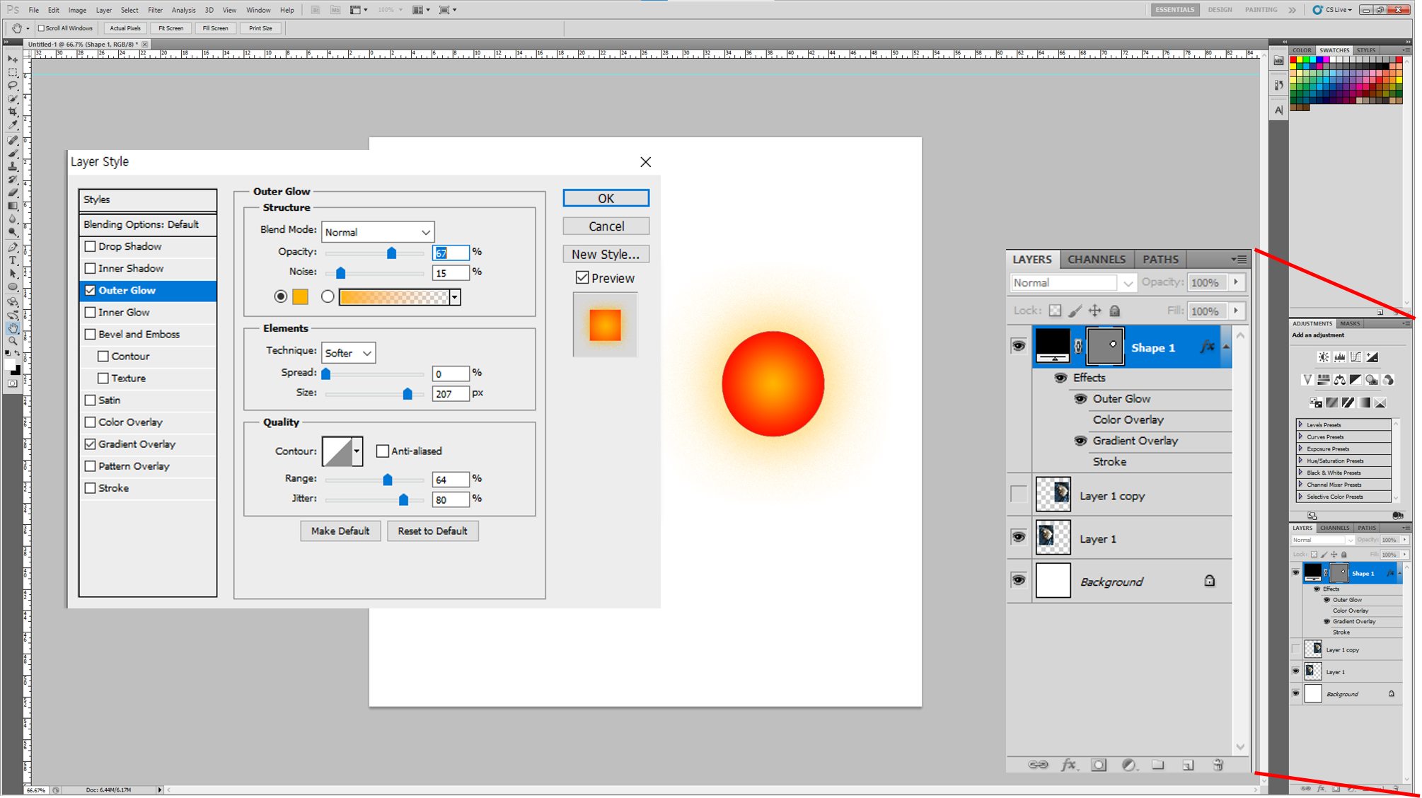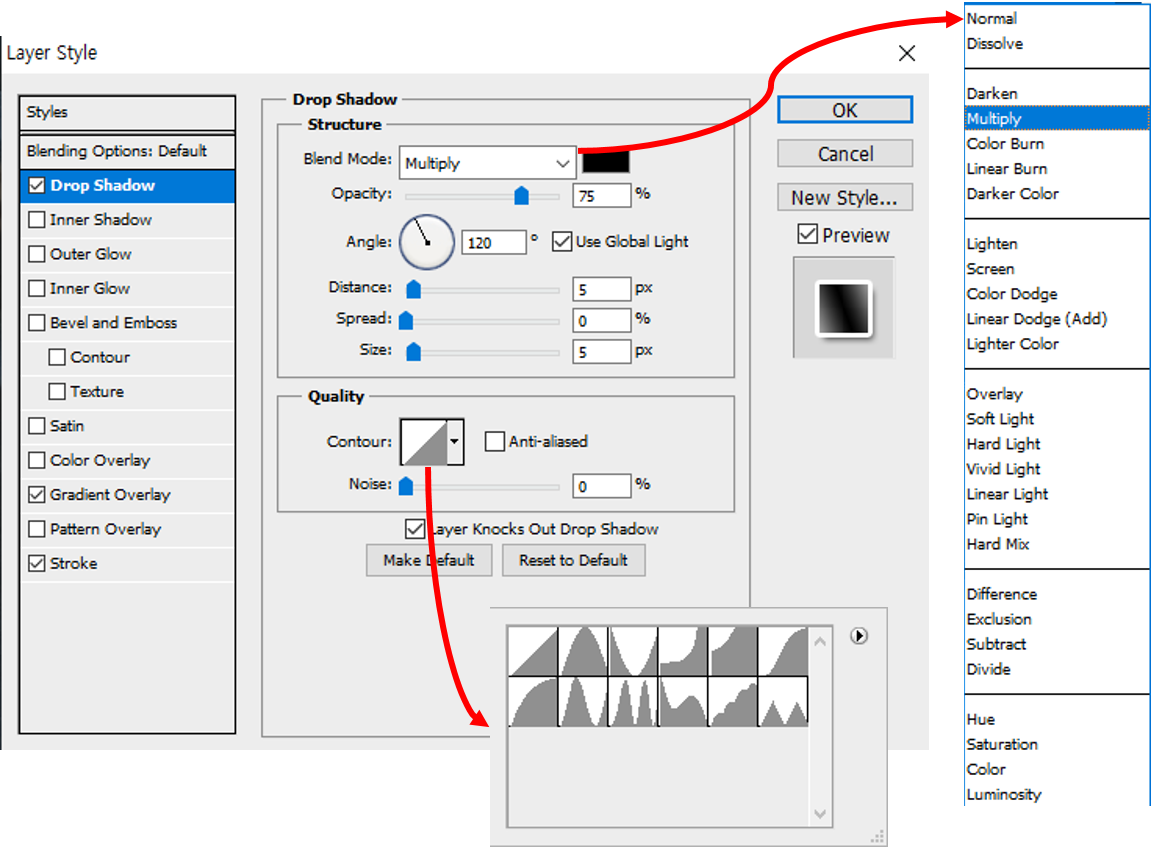 본 이미지는 외부 그림자 Layer Style 부분을 가져온 이미지 입니다.