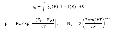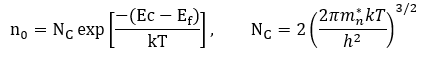 또한 파라미터 Nc(전도대의 유효 상태 밀도 함수)를 이용하면 다음과 같이 표현할 수 있습니다.