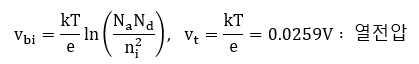 Vbi는 n영역의 전자와 p영역의 전자 사이의 평형을 유지시키고, p영역의 정공과 n영역의 정공의 평형을 유지시킵니다.