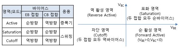 조건) B-E : forward, B-C : reverse, VB-VE=VBE≥0.7V, VB-VC=VBC<0.4V