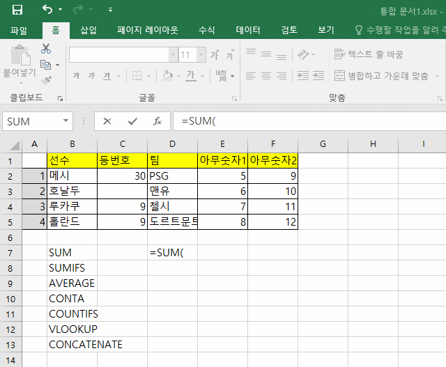 여기까지 자주 쓰는 엑셀 함수 4개를 알아봤습니다.