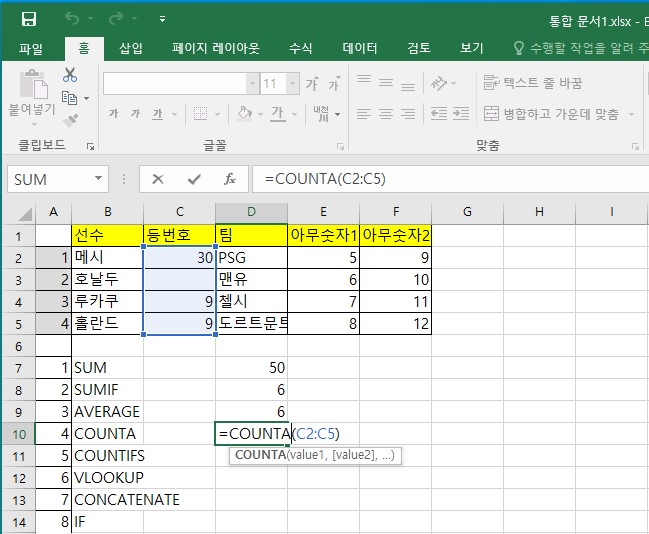 1. 엑셀(Excel)에서 자주 쓰는 함수 정리 1편 (SUM, SUMIF, AVERAGE, COUNTA)