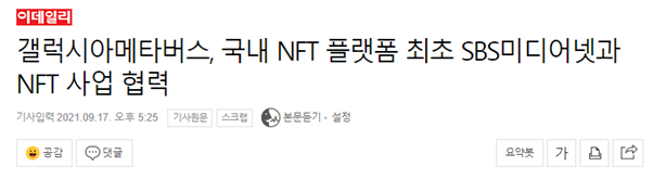다음으로는 얼마전 맥스트로 여러 주식투자자를 울린 메타버스를 소개할 예정입니다. 메타버스는 SBS, 펄어비스 등 여러 회사들이 개발 및 협력하고 있으며, 이번에 설명한 NFT 기술과 시너지를 불러 일으킬 수 있기에 각광 받을 수 있기에 다음 주제로 메타버스에 대해 자세히 알아봅시다.