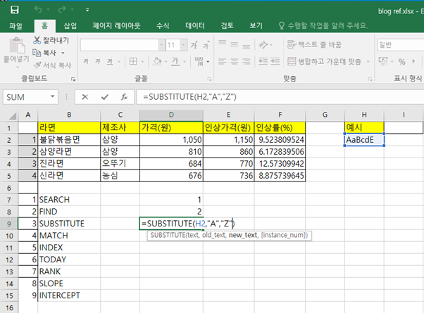 3. 엑셀(Excel)에서 자주 쓰는 함수 정리 3편 (SEARCH, FIND, SUBSTITUTE, MATCH, INDEX)